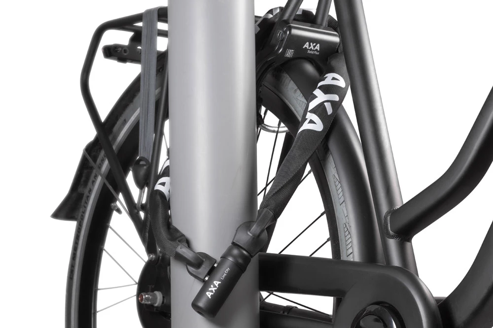 Ce kit se compose de l’antivol à chaîne AXA Solid Plus Retractable et de l’antivol à chaîne Linq City 100.