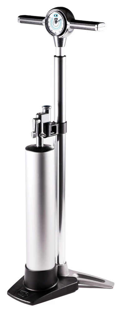 La pompe à pied variable Klic de Crankbrothers permet de remplir d’air le réservoir Tubeless pour ensuite le mettre sous pression dans un pneu Tubeless, mais il est également possible de gonfler un pneu sans réservoir.