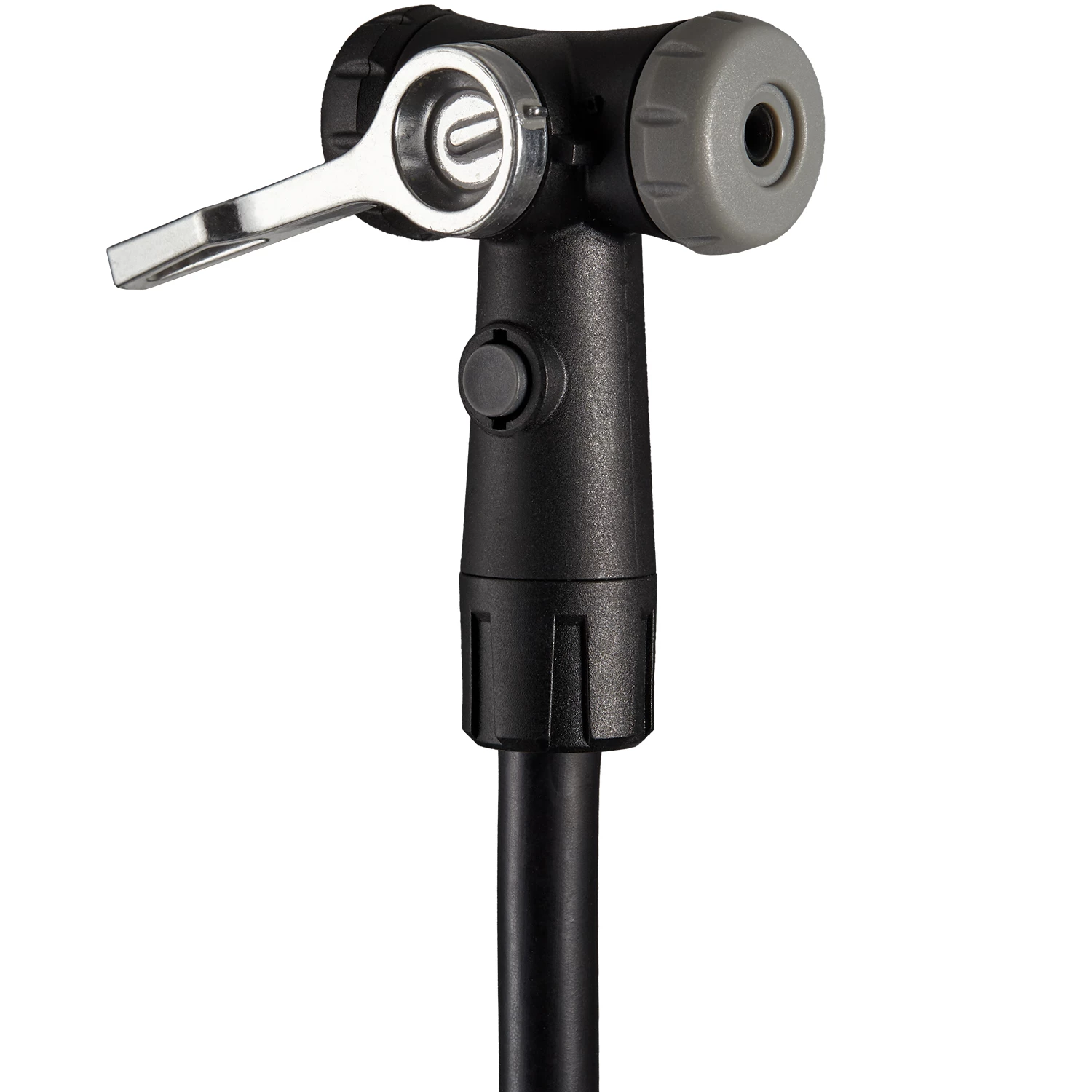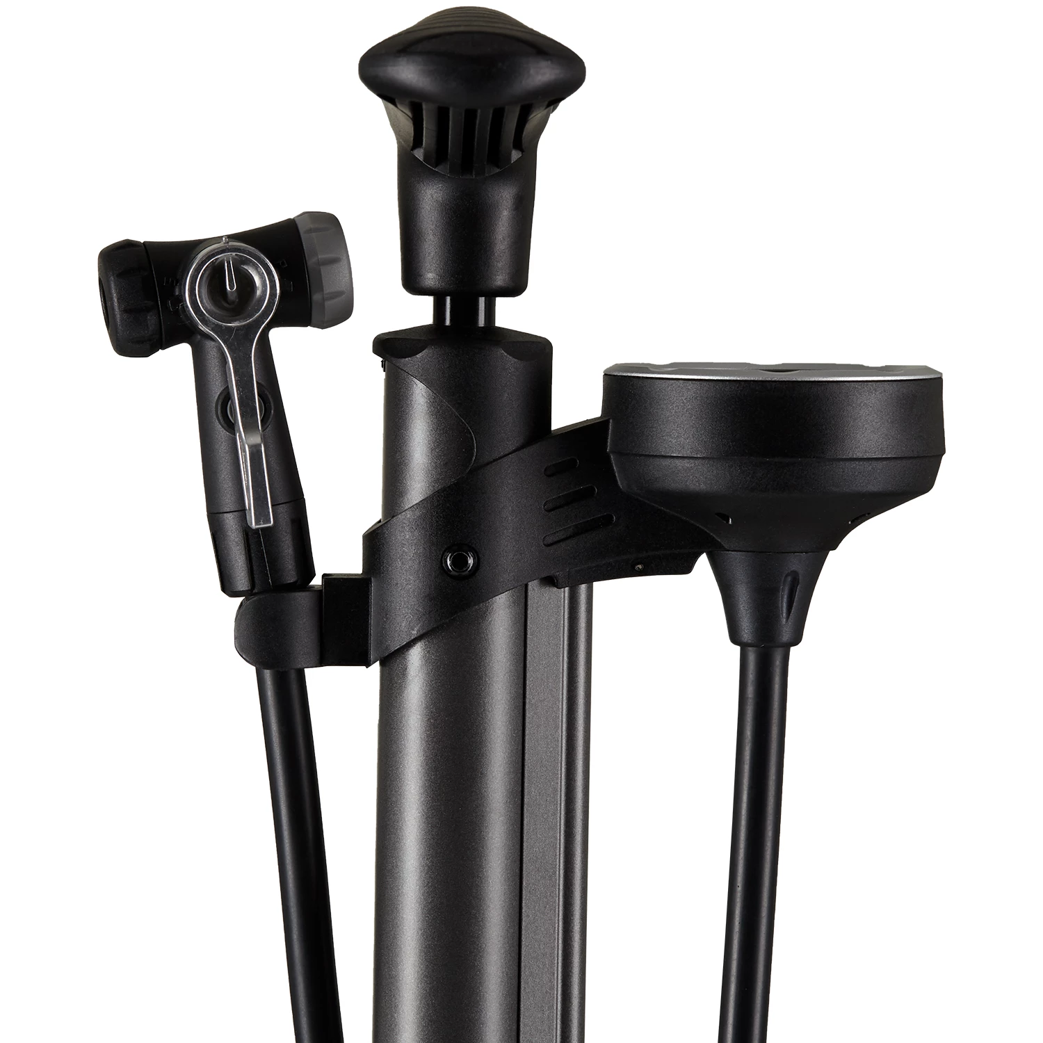 La pompe à air crée jusqu’à 160 PSI / 11 bars et convient aux valves Schrader, Presta et Dunlop grâce à sa double tête de valve.