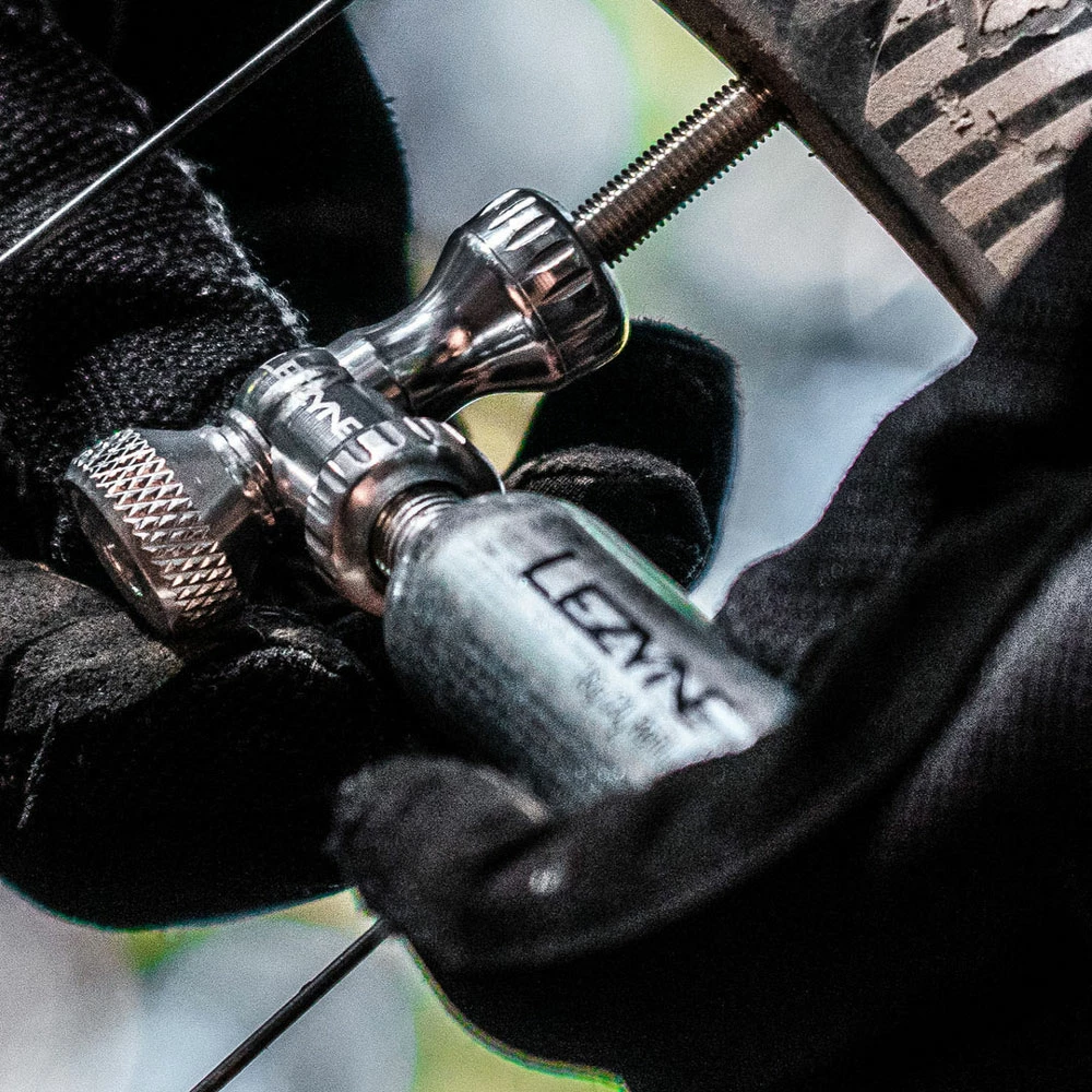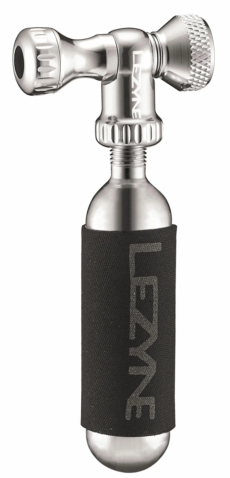 Pompe CO2 Control Drive de Lezyne usinée CNC. Un distributeur avec un bouton de contrôle pour un dégonflage facile et contrôlé.