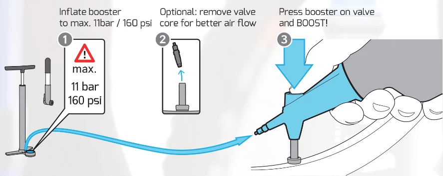 - Le Tubeless Booster est si léger qu’il peut toujours être emporté dans les bagages