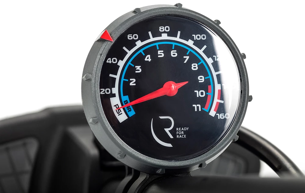 Peu importe ce que tu veux gonfler, la pompe à pied RFR HQP peut le faire. La tête de valve avec levier de fermeture rapide est adaptée aux valves Schrader et Presta. La poignée en T confortable facilite le gonflage jusqu’à une pression maximale de 160psi.
